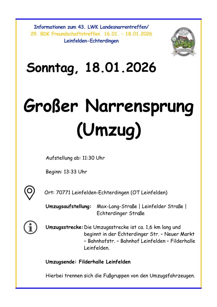 Sonntag 18.01.2026, Beginn: 10.00 Uhr, Einlass: 9.00 Uhr